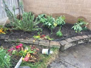 As mentioned before collard greens, Swiss chard, chives, sage, and rosemary were replanted. I added 3 different types of tomatoes, eggplants, squash, lettuce, peppers, cucumbers and basil.
