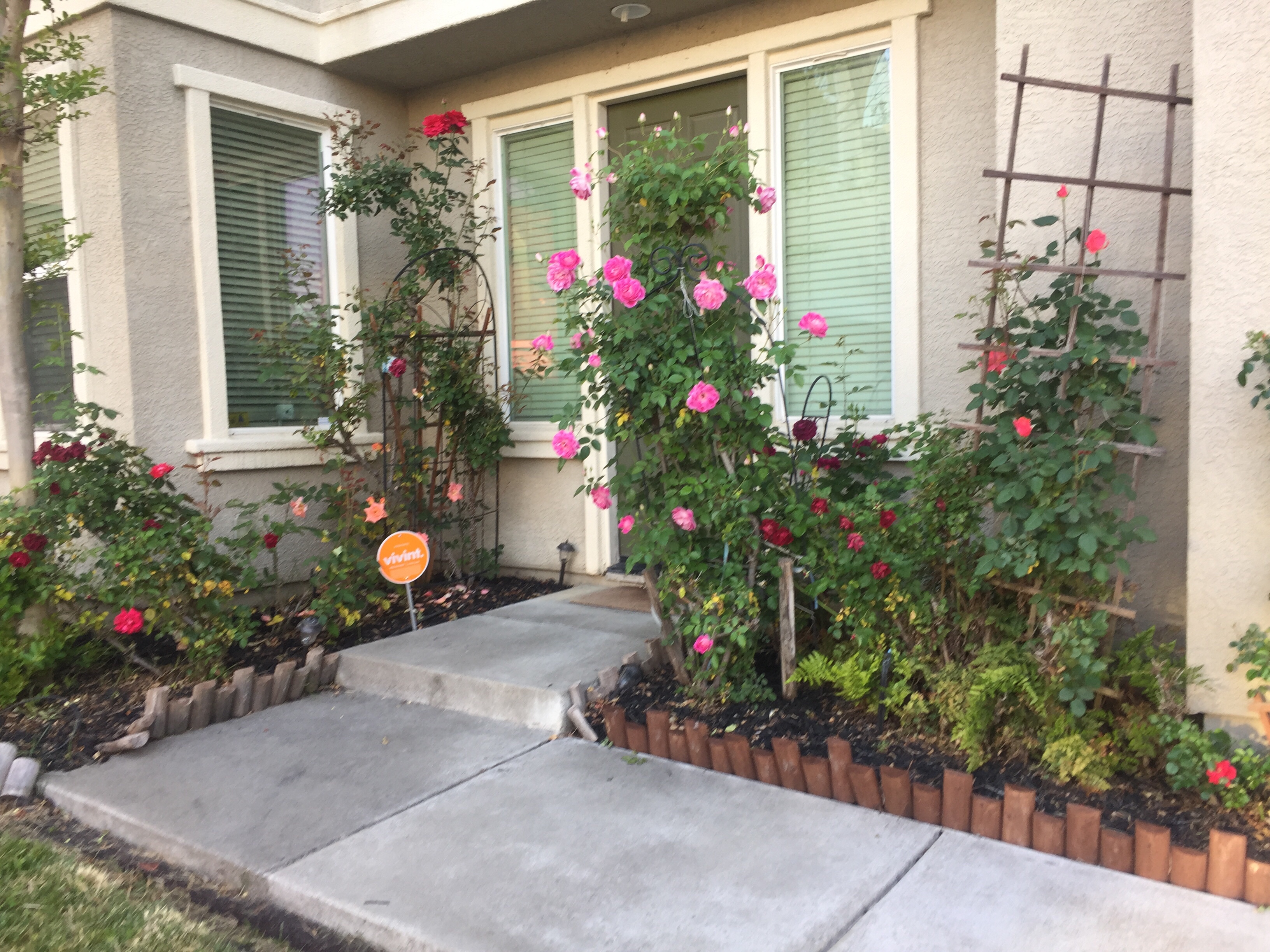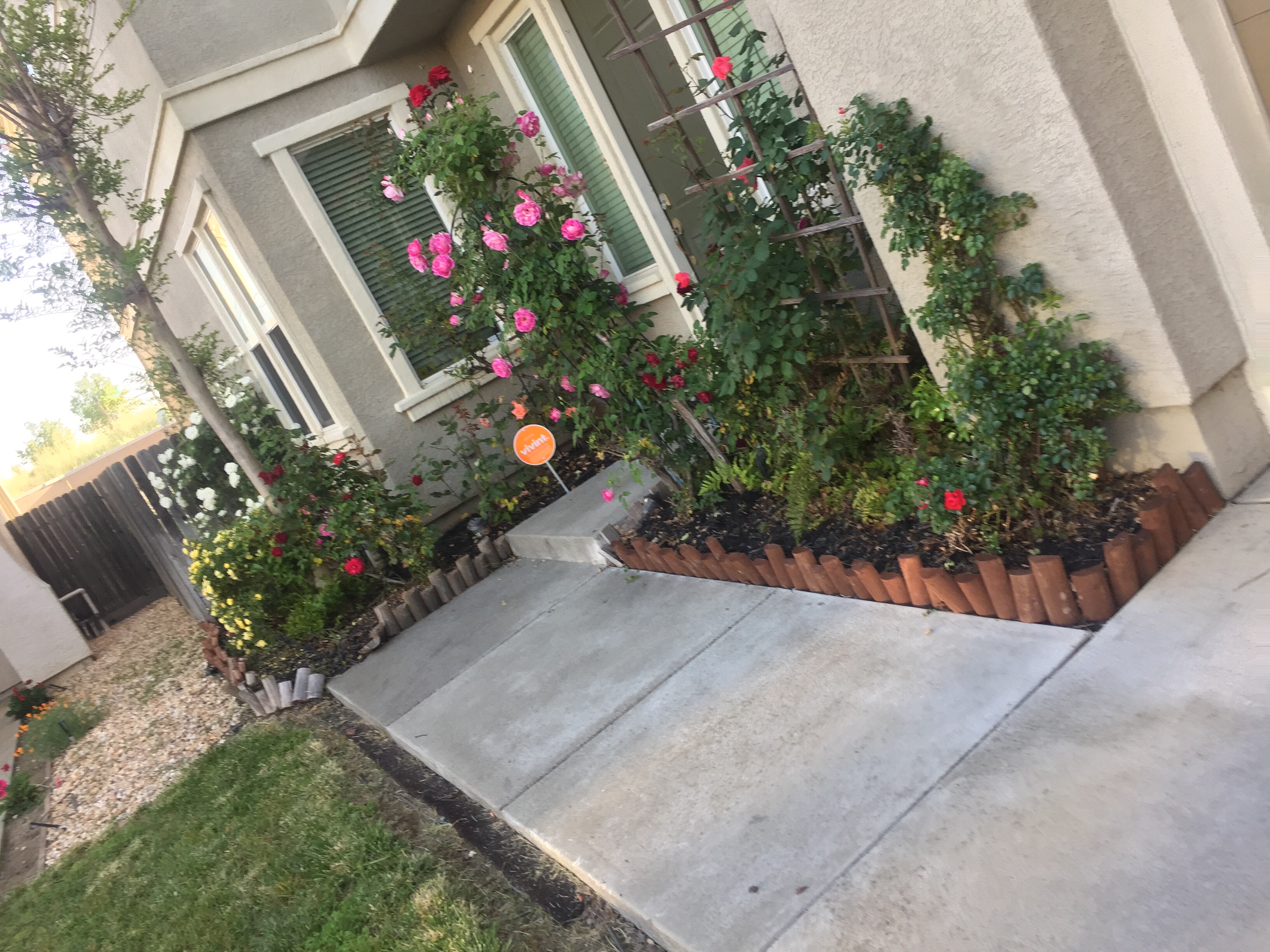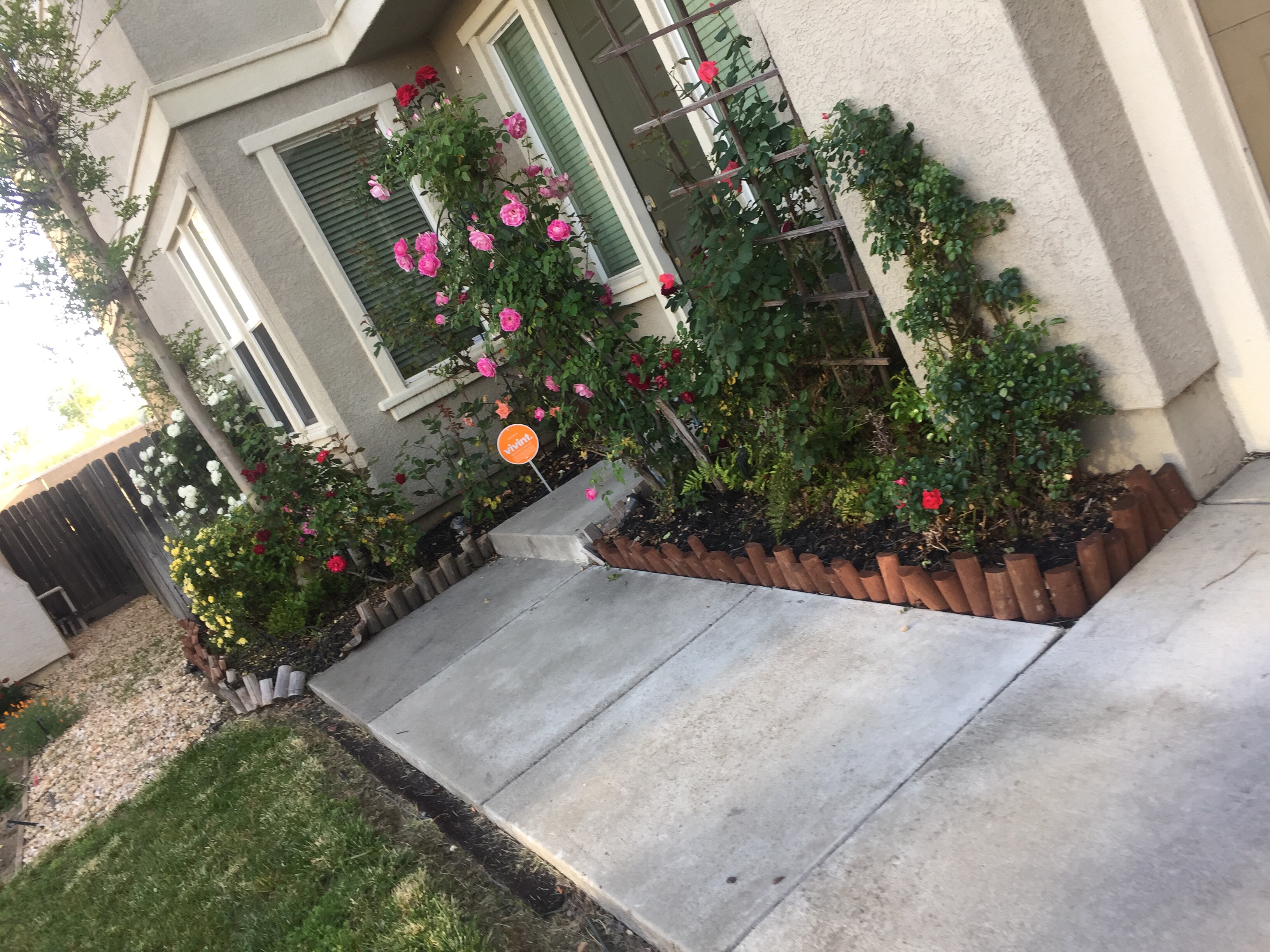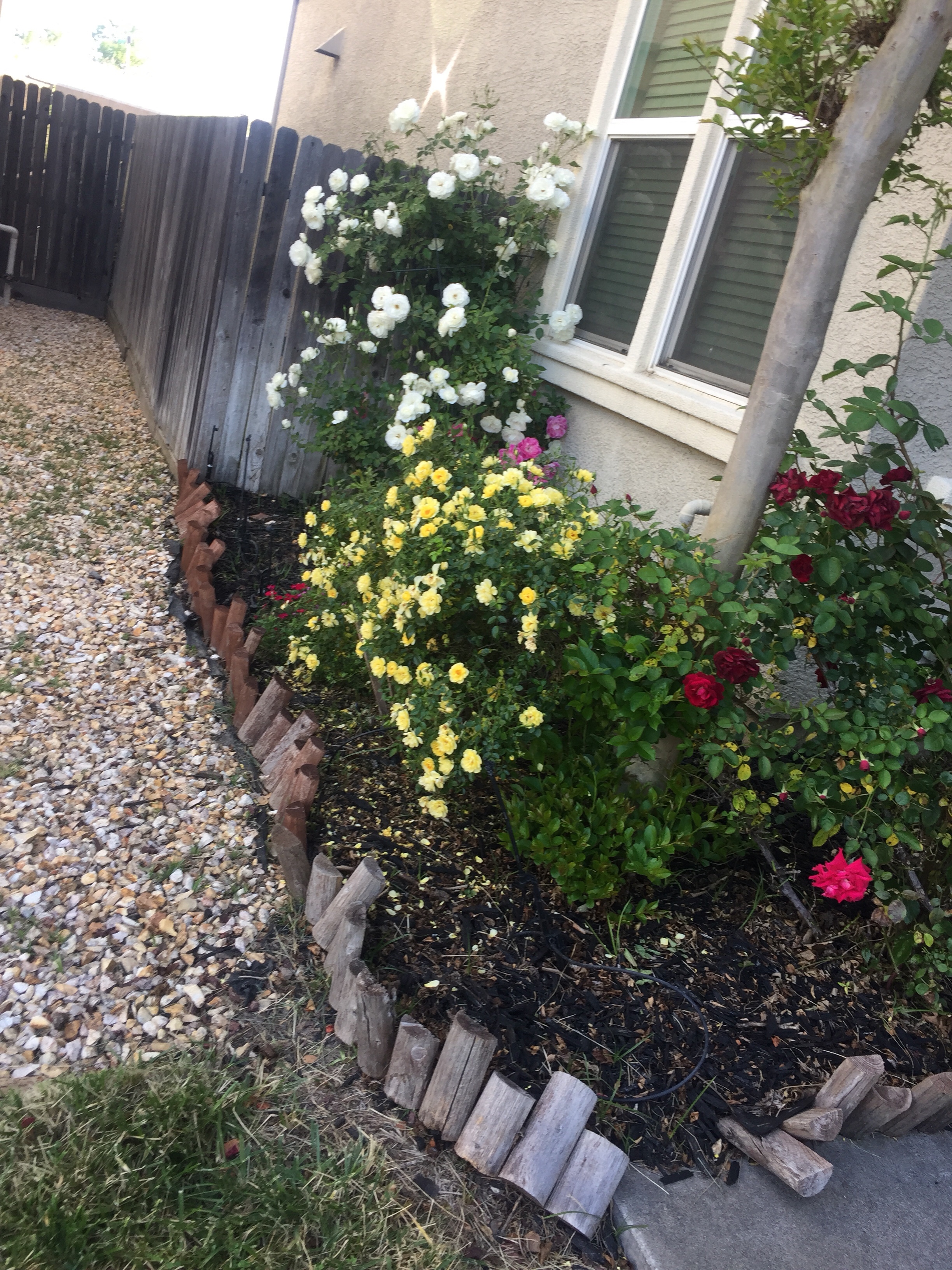 Gardens in the front yard and backyard blossoming well again this year. The front yard producing vibrant, varied, colored rose blooms of different sizes from bush to long stemmed I have planted throughout the years.