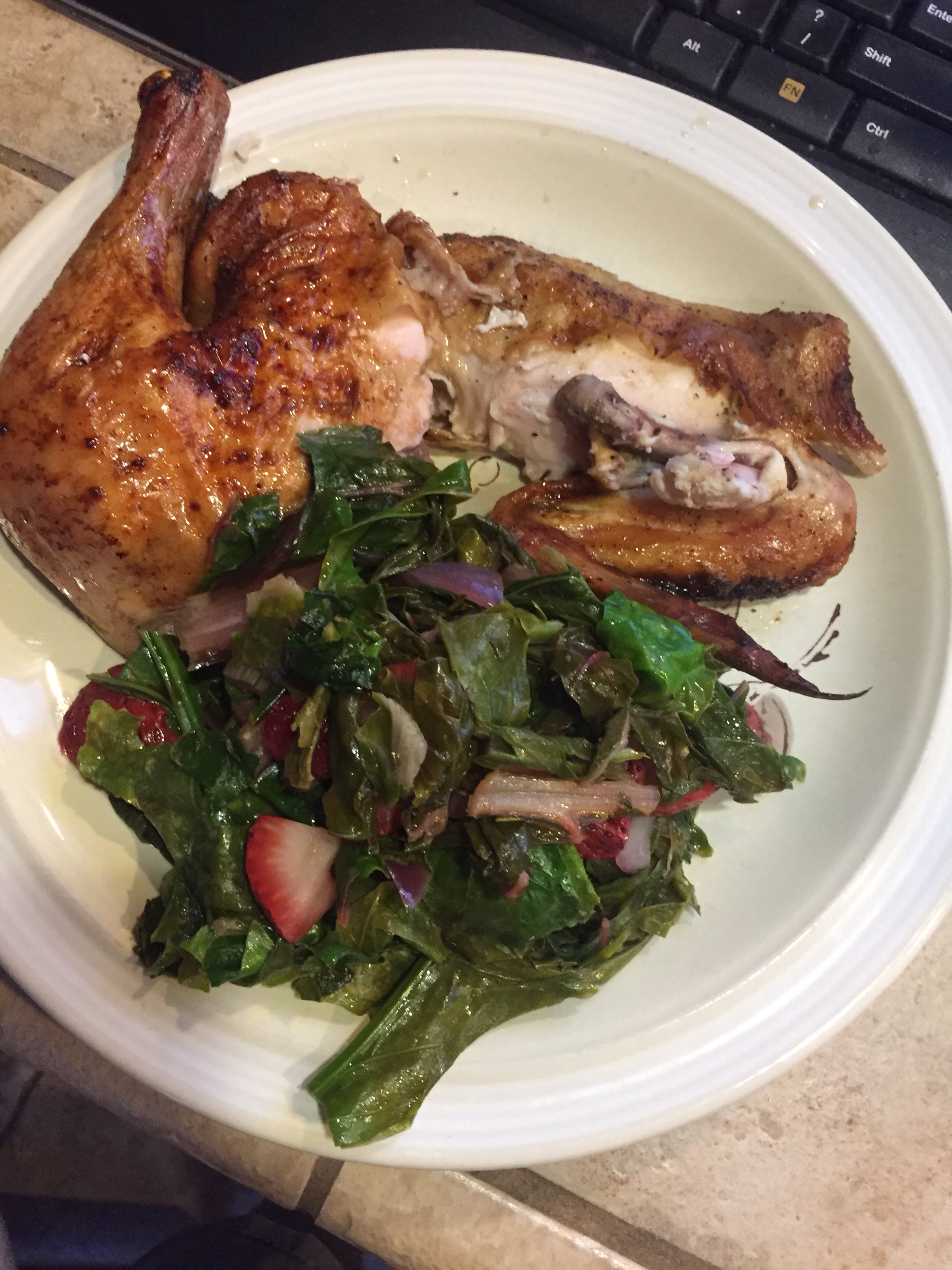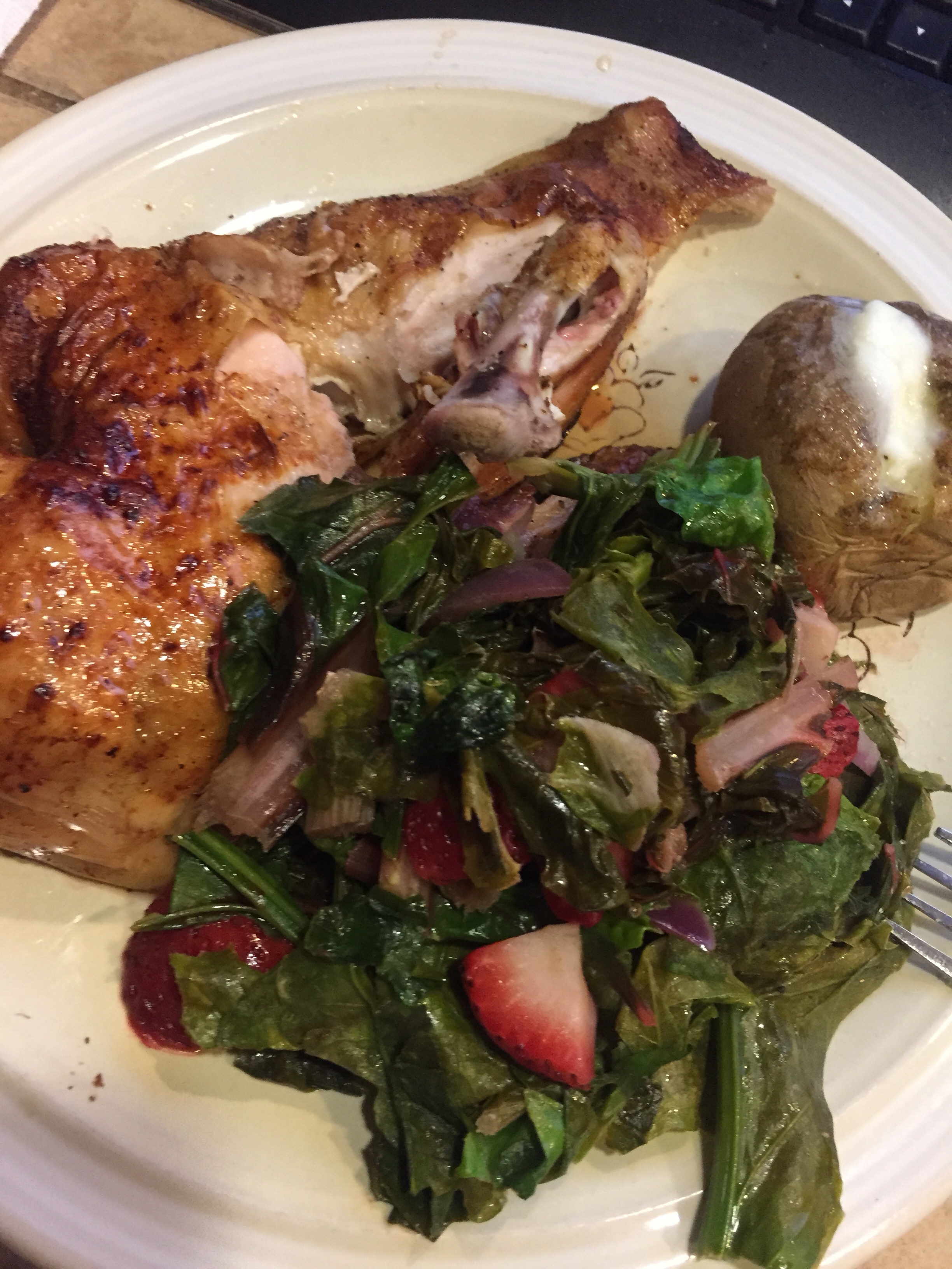 This is how I do my spring and summer dinners grabbing vegetables/herbs from the garden to the oven then the plate.