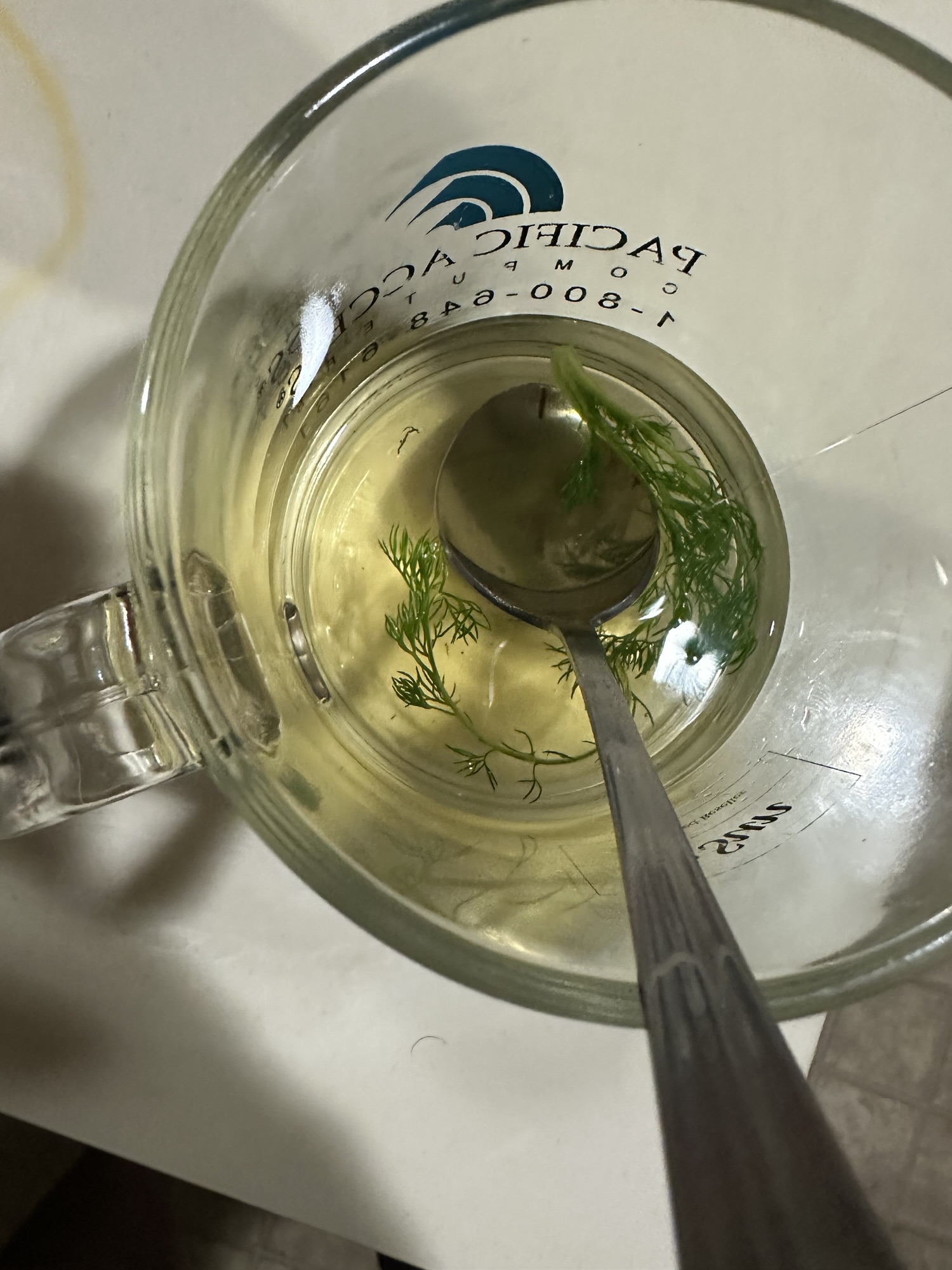 Normally I mix different herbs but it’s early to pull most herbs in my garden. This mistake was soothing and had a distinct flavor I like. I did sweeten it with a touch of Blue Agave but wish I didn’t.