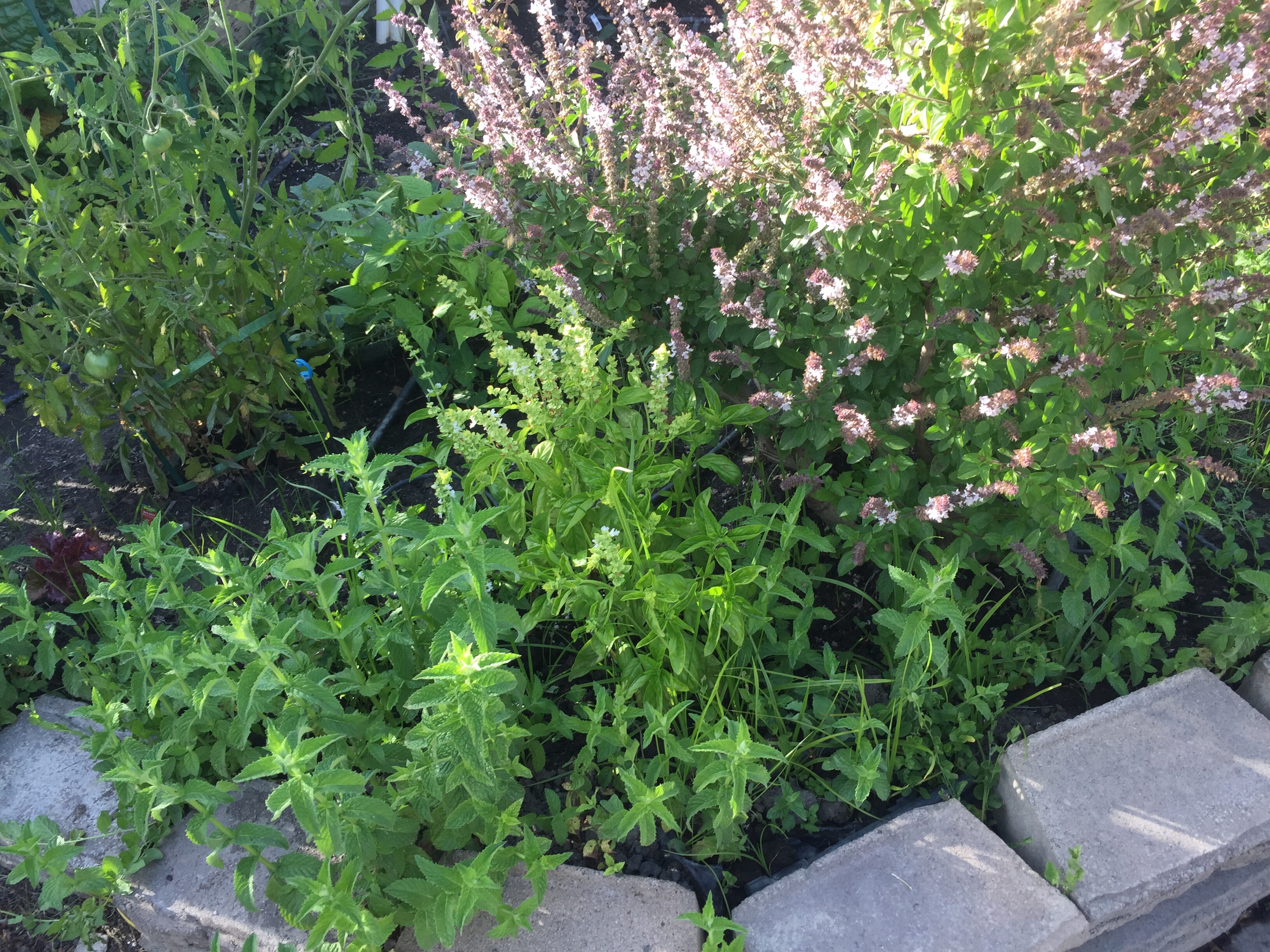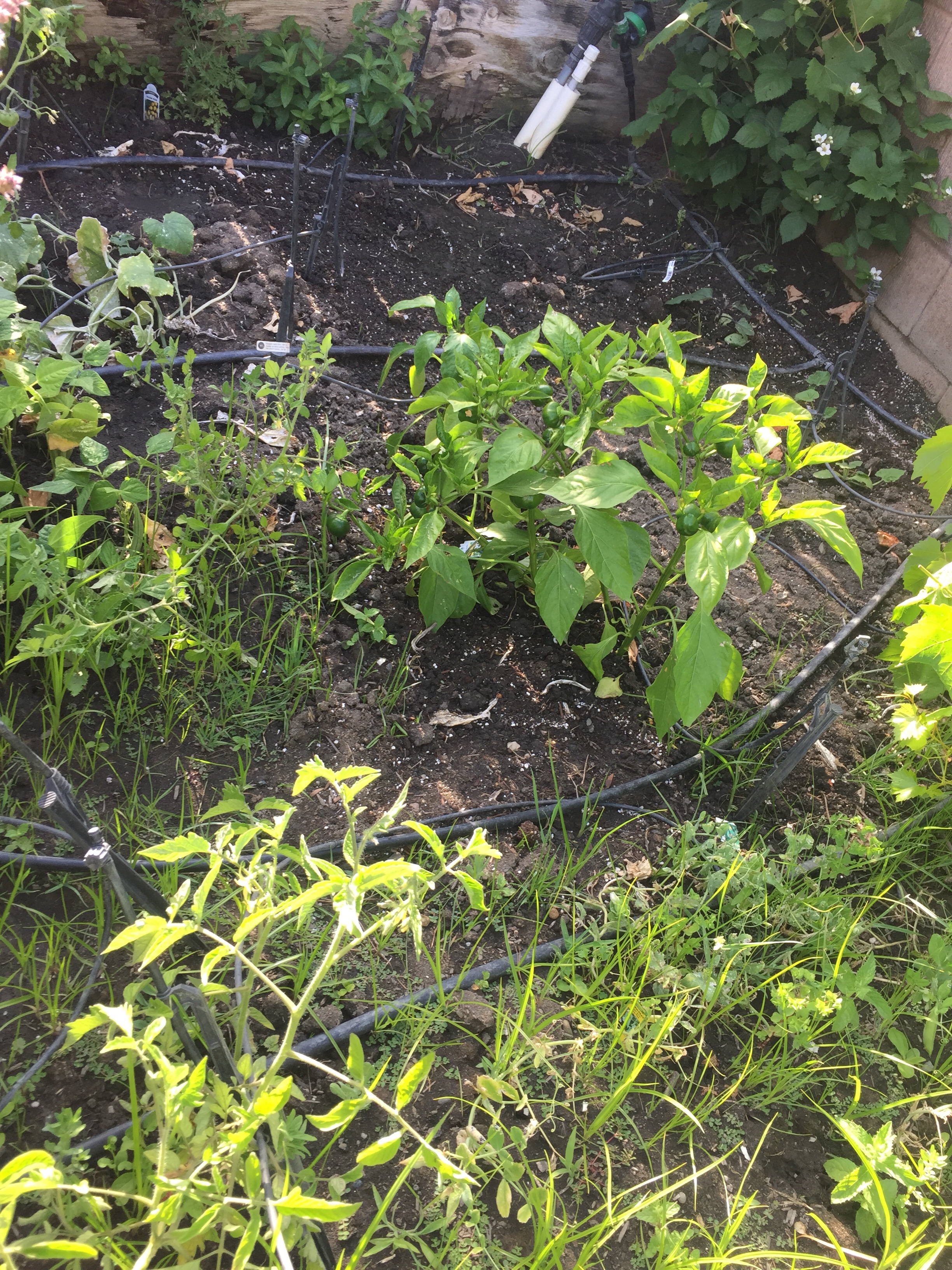 Beginning of this morning west vegetable garden.East side of the garden beginning of this morning.West side vegetable garden after today’s cleanup.East side of vegetable garden after cleanup.Tomatoes PeppersEggplant Japanese eggplant Chives and basilZucchini squash Yellow squash Cucumber Marigolds and rosesYellow roses Red roses and asylum flowers .White roses waiting to bid again.Red roses, marigolds and asylum flowers. Chives, cilantro and basil in background.