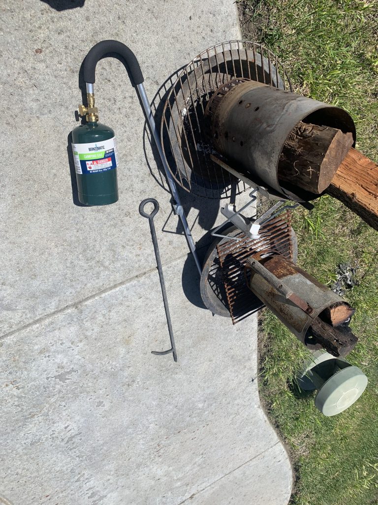 Chimney’s for lighting my wood for offset grill plus propane torch and fire poker.