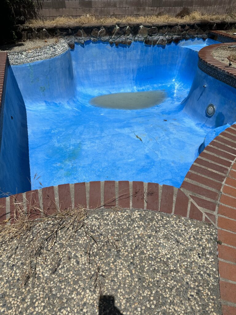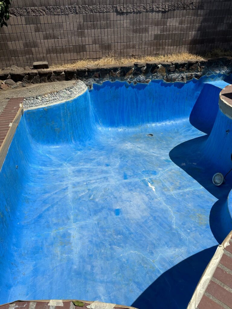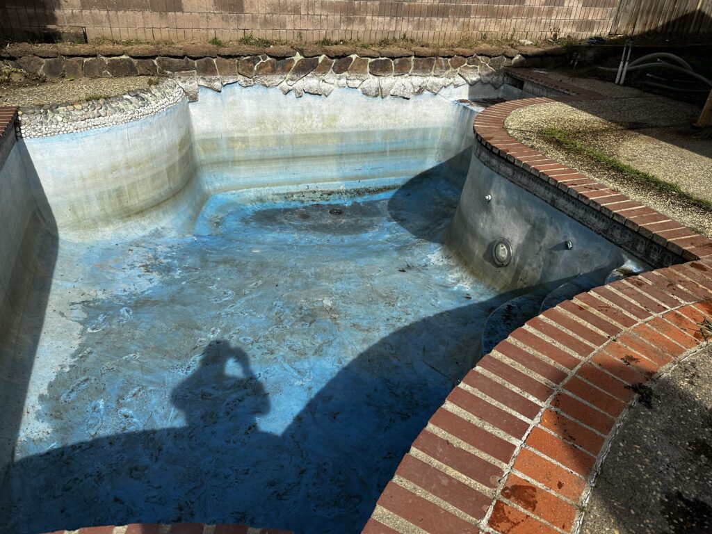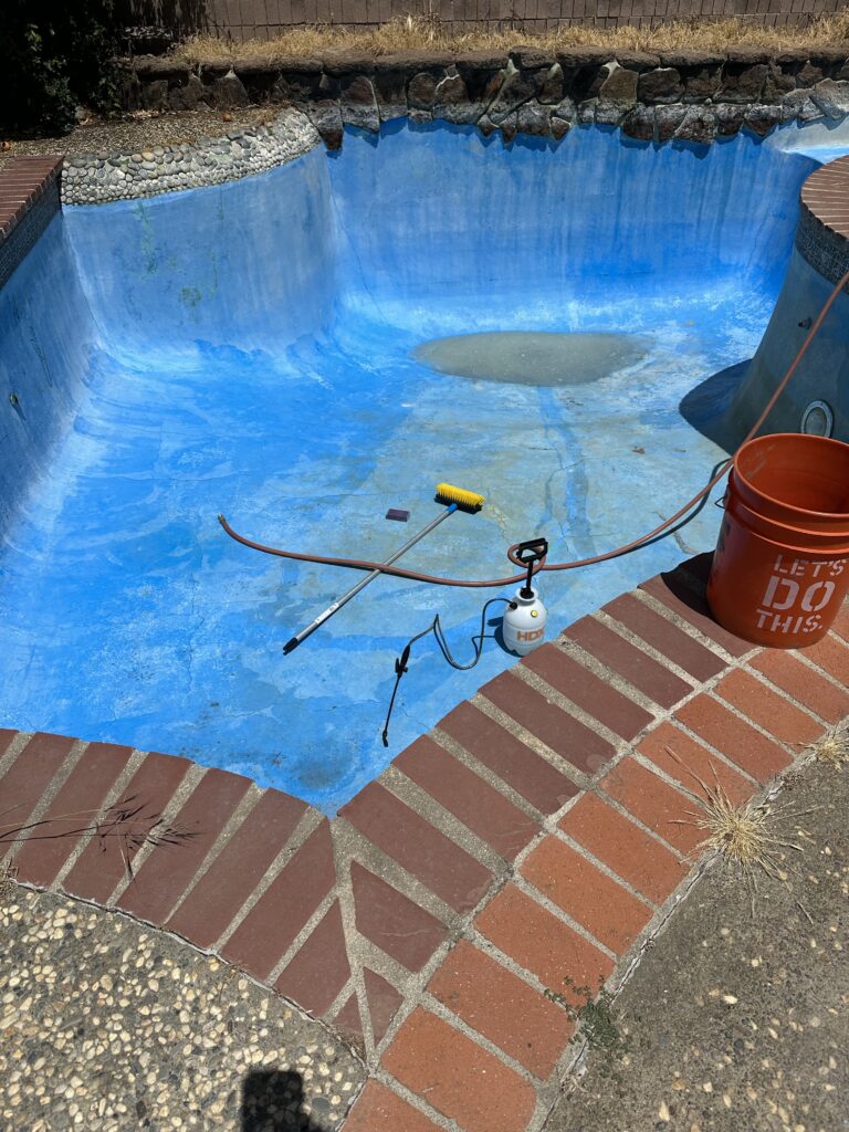 I then washed the entire pool down with muriatic acid. After finding different waste hazard places to dump the acid. I washed the pool with TSP.