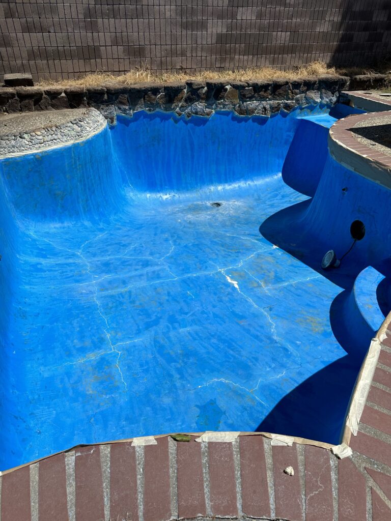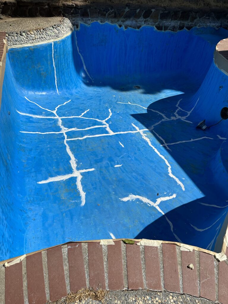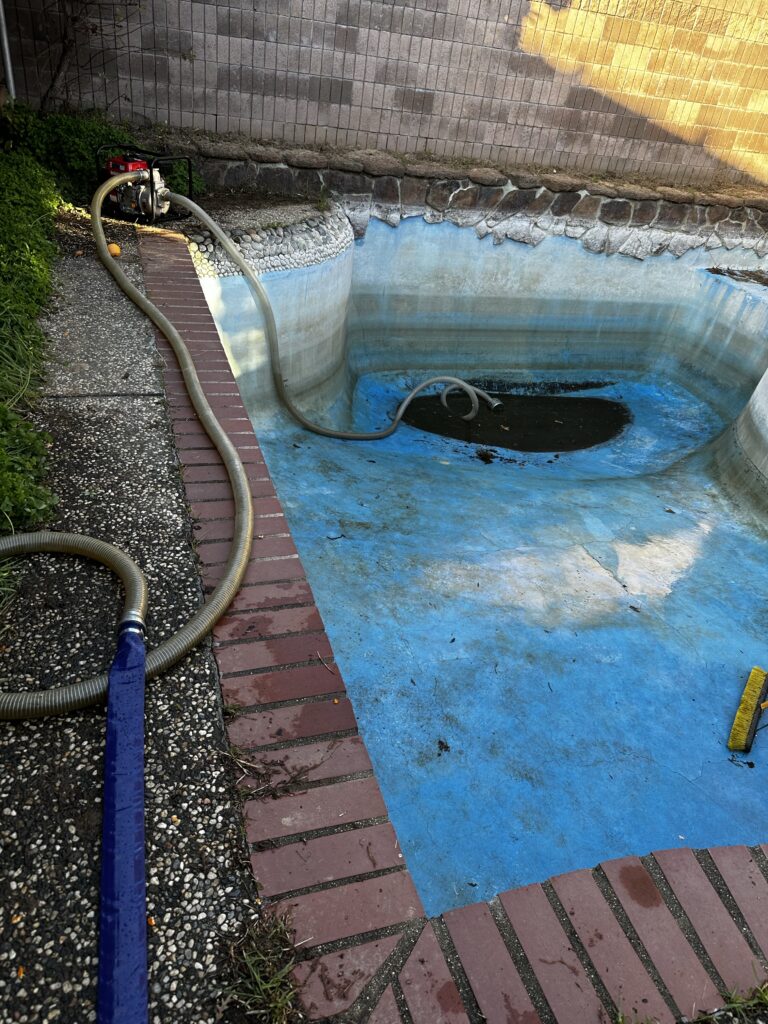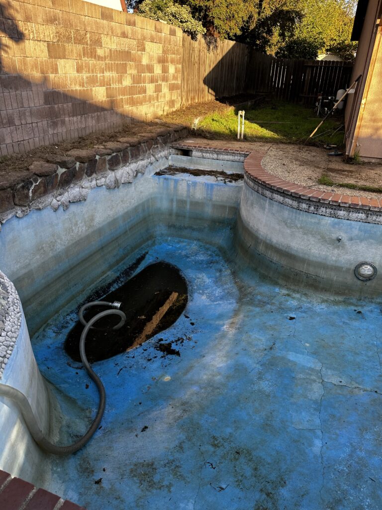 I then washed the entire pool down with muriatic acid. After finding different waste hazard places to dump the acid. I washed the pool with TSP.