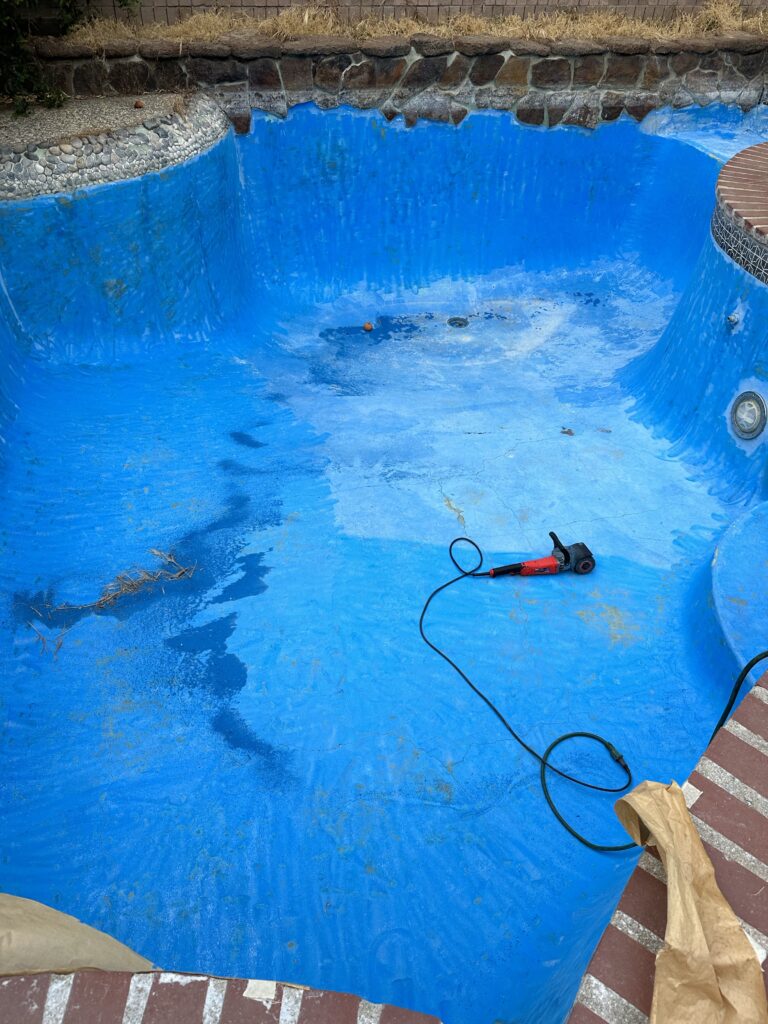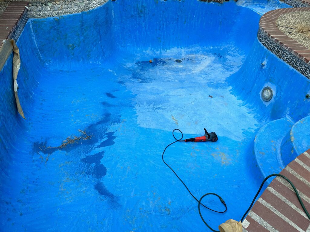 I then wanted to etch with something other than acid again prior to painting and tried several chemicals like CitrisStrip but that left a residue I had to clean up with acetone and the surface prep sander again. I finally acetone etched the whole pool and did another round of sanding with the surface prep tool.