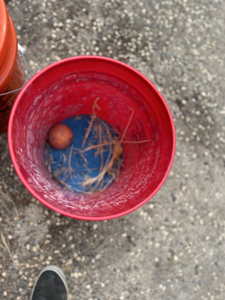 A little guy dropped into the pool. I had to set a long 2×4 for him to eventually crawl out.