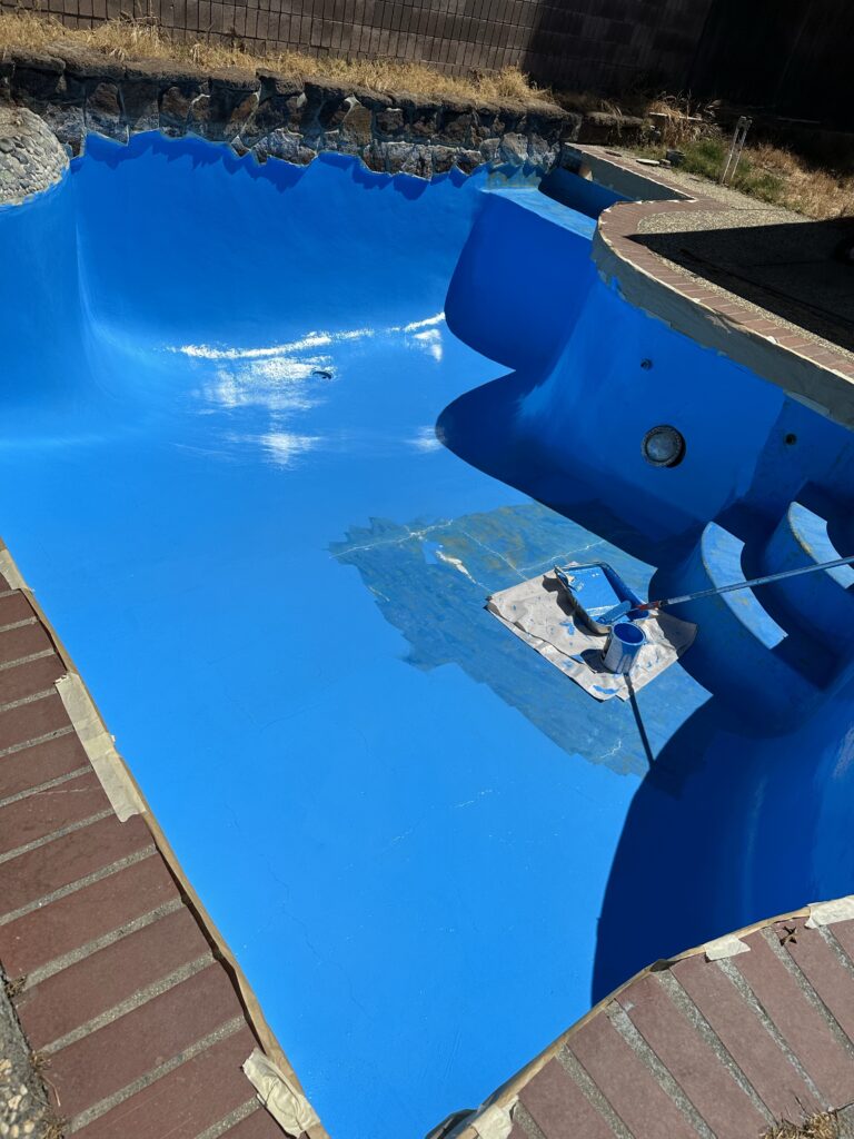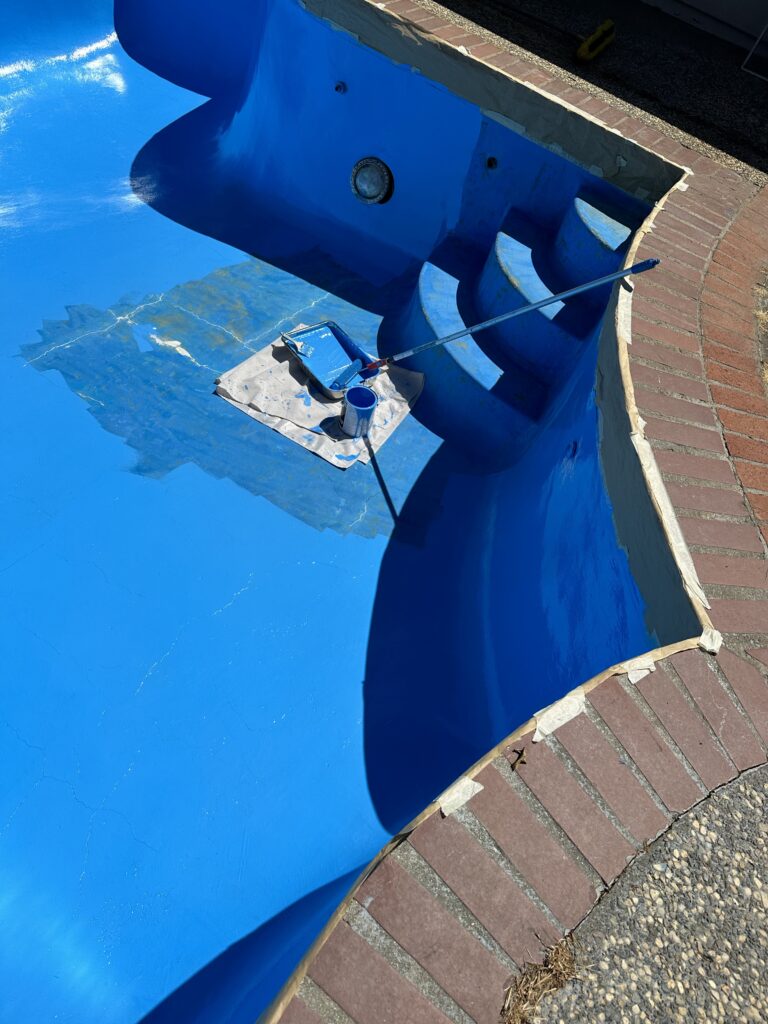 Finally finished painting the pool after lots of prep work after years of neglect in my rental. With Covid restrictions gone, I was finally able to move forward clear debris, prep surface (lots of hours) and paint. I used Dura Seal epoxy with an 8-year life.
