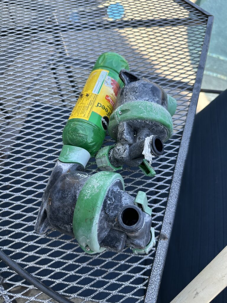 The Miracle Grow fertilizer injectors after more than a decade of usage was also leaking.